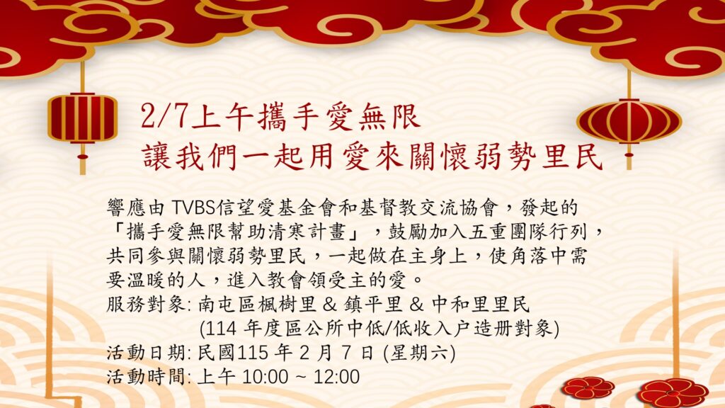 2/7上午攜手愛無限,讓我們一起用愛來關懷弱勢里民