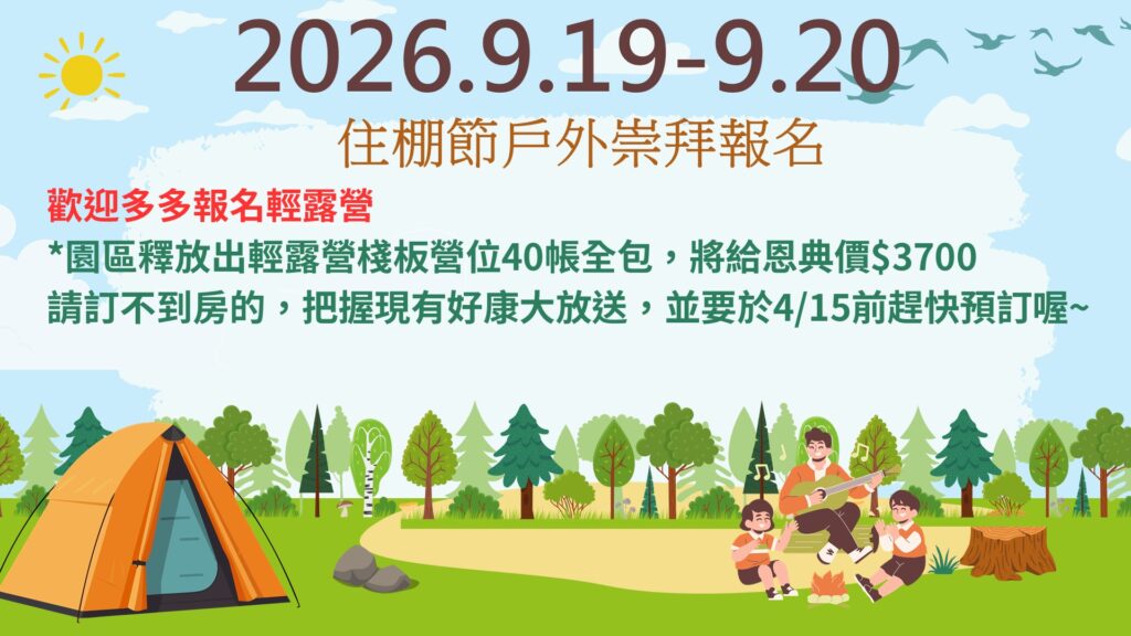 報名截止:4/15以前,請向珮芬姐妹報名繳費,需完成繳費後才算完成訂營位或訂房程序